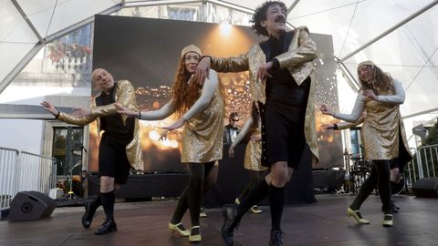 Porque esta edición de la toma adelantada de las uvas de Vilagarcía fue la vigesimoquinta de la historia, hecho que se encargaron de recordar constantemente los conductores de la cita, Carlos Blanco y Erea Hierro —ambos vilagarcianos, por supuesto—, quienes subieron a la multitud a un ficticio DeLorean para recordar cómo era la capital arousana en el año 1998, primero en el que se descorchó el champán antes de tiempo, no en Ravella, sino en la plaza de Galicia —la ubicación actual se formuló en el año 2007—. Gobernaba un incombustible Javier Gago, los coches circulaban a sus anchas por una rúa Alcalde Rey Daviña que ya no se llama así, en O Cavadelo aún había un campo de fútbol y la ciudad carecía de auditorio. La música pinchada por Borjamina —que en el 1998 apenas levantaría un palmo del suelo— contribuyó a generar ese ambiente nostálgico que, sin embargo, no sonó añejo. Consecuencia, quizás, de que todo vuelve, también el pastilleo.