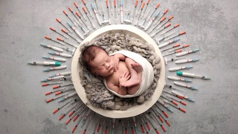 La fotógrafa Nuria Atanes buscó la ayuda de sus colegas de Estudio 28 para conseguir una foto con la que contarle a su bebé «que nació gracias a la ciencia»
