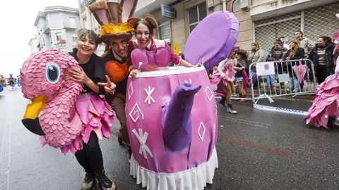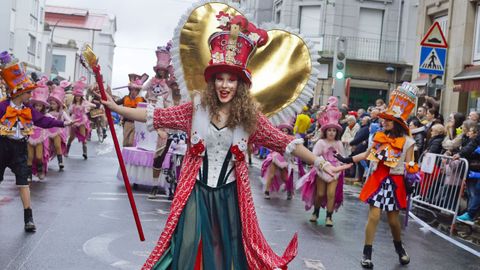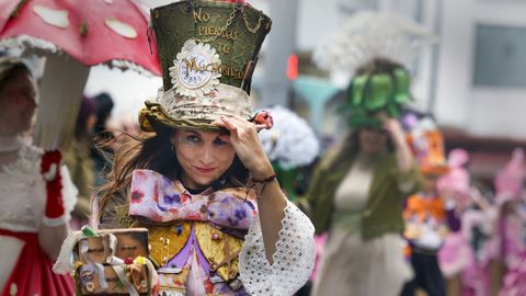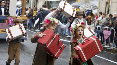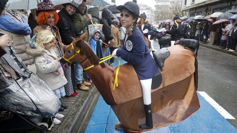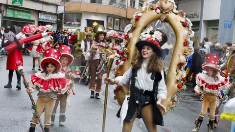 En la categoría de grupos de hasta 20 personas, el primer premio fue para «Cine Avenida», de Rianxo, mientras que el segundo y el tercero recayeron en «Remendos do Faiado», de Meis, y «Escuela de hípica “Os pintamonas”», de Portas. En el apartado de comparsas más numerosas, tras la ganadora se situaron «El show del Gran Hotel», de Vilagarcía, y «El jardín de la ilusión», de Poio.