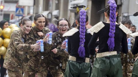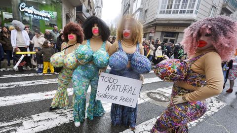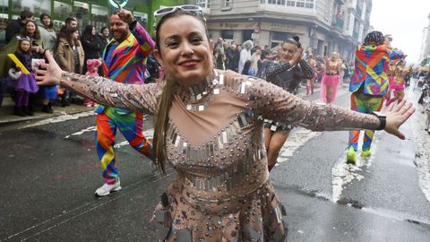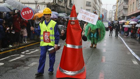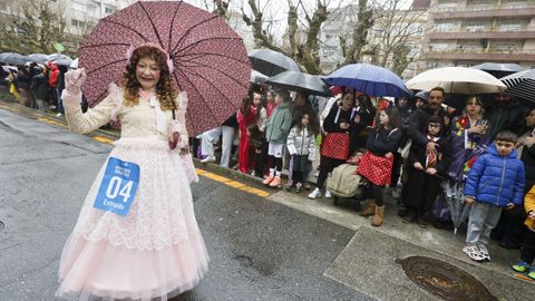 El desfile arrancó en la calle Alexandre Bóveda y concluyó en la plaza de Ravella, donde el jurado se reunió para dar a conocer el fallo tras una deliberación que tuvo en cuenta la originalidad, la puesta en escena y la animación de cada propuesta. Aunque el mal tiempo obligó a retirarse a dos grupos y a algún disfraz individual o en pareja, cerca de un millar de personas completaron el recorrido, acompañadas por centenares de espectadores que siguieron la marcha desde las aceras pese a los chubascos intermitentes.