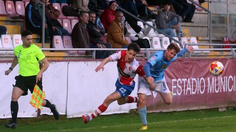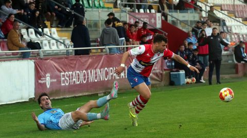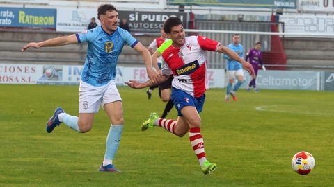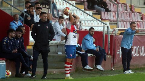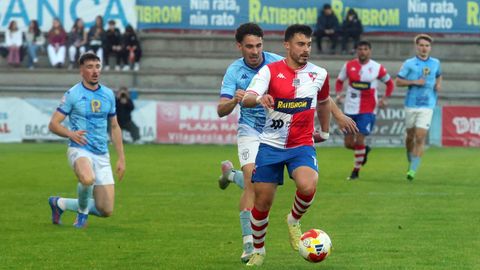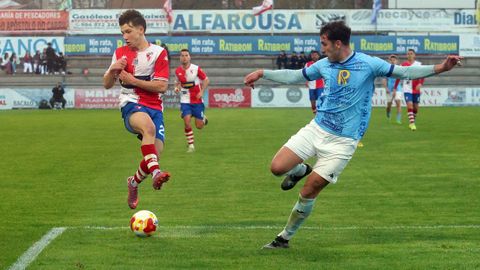 Sobre un césped irregular, los dos rivales abrieron más de una boca los primeros veinte minutos de contienda. Los locales controlaban la pelota, como les había reclamado su entrenador en la víspera para evitar sustos de un conjunto lucense que se crece cuando puede forzar acciones a balón parado en las cercanías de la portería contraria, pero el Arousa carecía de ritmo y velocidad para generar peligro. Hasta que en el minuto 25 Gonza permutó a sus dos hombres de banda, pasando a Iñaki Martínez a jugar por su carril natural, el izquierdo, con Lombao haciéndolo a pierna cambiada por la derecha.