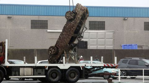 Retiran un coche del fondo del puerto de Tragove, en Cambados, con un cadáver en su interior