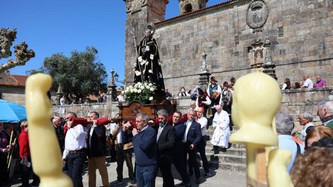 Un sol radiante y una temperatura suave acompañó este sábado por la mañana a las decenas de fieles que acudieron a los actos litúrgicos que se celebraron en el entorno de la monumental plaza de Fefiñáns con motivo de la celebración del día de San Benito, a quien está consagrada la iglesia que cierra el recinto.