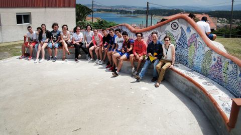 Aprovechando las clases de volumen, los estudiantes han confeccionado una serie de mosaicos con formas redondas, además de hacer las olas con trozos de azulejos que ellos mismos rompían. En las de dibujo, además, los alumnos han cortado un sinfín de círculos de cerámica para decorar el asiento. «Cortar esos círculos es un trabajo de chinos», explican las profesoras. Y reconocen que los estudiantes se han tomado con muchas ganas este proyecto. Muchos de los azulejos son donados por almacenes de la zona. «En Prefabricados Dena se han portado muy bien y ahora nos llaman cada vez que tienen algo», relata Arrillaga. Y así, pedacito a pedacito y con miles de restos de azulejos de todos los tamaños y colores, alumnos y profesores han comenzado a dar forma a este peculiar banco. Serán los estudiantes de los próximos cursos los que se ocupen de terminarlo. Los de este recibieron ayer su diploma que acredita su tarea como autores de este peculiar asiento.