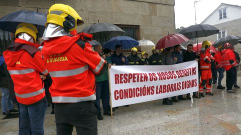 31 ene 2020 . Actualizado a las 05:00 h.Desde A Guarda, desde Valdeorras, desde Castro Caldelas... Desde un sinfín de puntos de toda Galicia llegaron ayer a Valga profesionales de las emergencias. Integrantes de los diversos GES en activo de todo el territorio acudían a solidarizarse con quienes, hasta el pasado 31 de diciembre, formaban el servicio que cubría a los municipios del Baixo Ulla. Eran doce personas que se quedaron sin trabajo después de que el Concello, tras un largo conflicto laboral, decidiese desmantelar el servicio. La plantilla, entre lluvia y petardos, advertía ayer que ha presentado una demanda por despido nulo, al considerar que no hay justificación para el cierre del GES de Valga. Quieren ser readmitidos y quieren, sobre todo, que el GES siga operando desde donde lo estaba haciendo.
