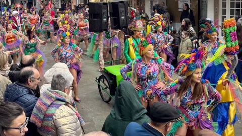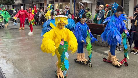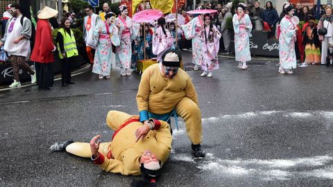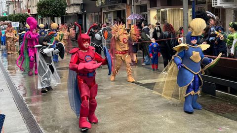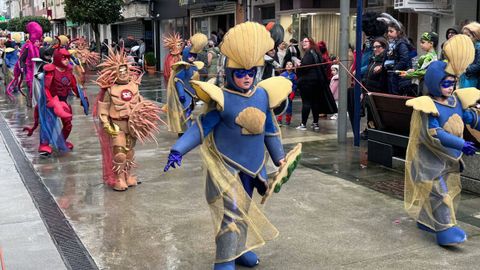 17 feb 2026 . Actualizado a las 19:43 h.No había previsión de lluvia, pero finalmente el agua deslució el desfile en O Grove, que partió de la Praza do Corgo con puntualidad. Había una buena cantidad de disfraces, desde luchadores de sumo a cartas de baraja, o un fantasioso gallo con alas de dragón, tartas de colores, superhéroes y algún que otro choqueiro. No faltaron las carrozas ni los grandes grupos que recuerdan a los coloridos carnavales de Río de Janeiro. Todos ellos pasaron a toda mecha, en una única vuelta, y no les faltó el humor. La lluvia comenzó a caer más fuerte y la organización permitió que no se efectuase la segunda vuelta, así que a las seis de la tarde no había rastro de los desfiles en la calle principal. Las comparsas se peleaban por entrar en los bares y no cabía un alfiler en ningún lado, pues la lluvia no permitía estar fuera. No sé suspendió pero fue un martes de carnaval descafeinado para lo que están acostumbrados los mecos.