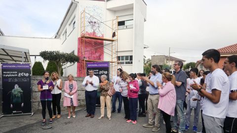 El colegio Julia Becerra Malvar, de Ribadumia, acogió ayer la vigésima intervención del programa Violencia Zero, de la Diputación de Pontevedra. La iniciativa está destinada a acabar con al violencia machista. Un centenar de alumnos colaboraron con los artistas Xoana Almar y Miguel Peralta, que pintaron un mural titulado «Mulleres da Terra» en el colegio.