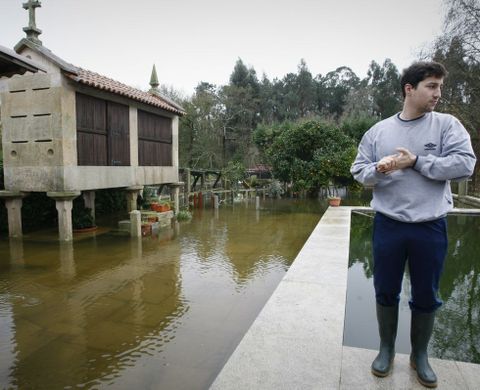 La misma suerte que estas instalaciones sufrieron las fincas de la parcelaria de Oubiña, en Cambados. «É raro o ano que non vota por fóra», reconoce Juan Pintos, un vilagarciano que tiene una finca en la que planta verduras. En su opinión, las obras en este entorno se hicieron mal y, además de inundarse todos los años, cuesta más sacar el agua de las parcelas. Es por eso que muchas de estas propiedades están ya sin cultivar, «porque xa saben o que pasa», relata. No muy lejos está la casa de Rubén Oubiña. Esta mañana en vez de jardín tenía una masa de agua. Pero se lo toma con humor. «Una vez al año sabemos que pasa esto, depende de cómo regulen el embalse». No tiene problemas con su casa, «porque ya se hizo alta», pero sí que le causa algún que otro inconveniente. «Sacamos las vallas para que no se rompan y no puedes tener las cosas como a ti te gustan», explica. Considera que el embalse tiene mucho que ver en el nivel del río. Y cree que lo peor está por llegar. «Espero que por la noche baje un poco, pero tememos al domingo», asegura.