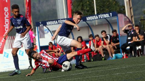 17 jun 2018 . Actualizado a las 05:00 h.El Torneo Internacional Alevín Arousa Fútbol 7 conocerá esta tarde, a partir de las siete en el campo de hierba sintética Manuel Jiménez de Vilagarcía, el nombre del ganador de su vigésimo tercera edición. Una identidad que ayer, al término de la segunda jornada del campeonato, resultaba casi tan difícil de discernir como el día anterior, de no ser por que la conclusión de la fase de liguilla ha despejado a casi la mitad de sus aspirantes con sus buenas opciones como el que más. En la práctica, todos los grandes equipos invitados por la organización tras la resolución de la fase previa, excepto al hablar de un Grupo A en el que F.C. Barcelona y Villarreal no hallaron otro rival a su altura que el uno al otro, como prueba que ayer por la mañana estuviesen ya clasificados para los cuartos de final de esta mañana pendientes de repartirse el primer y segundo puestos de sus cuadro. El premio acabó en manos de los culés con su 1-1 vespertino ante los valencianos.