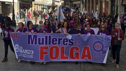 Arredor de 4.000 persoas, segundo a organización convocante, a CIG, congregáronse na capital arousá para reclamar a igualdade da muller e do home a todos os niveis, e en todos os eidos da sociedade