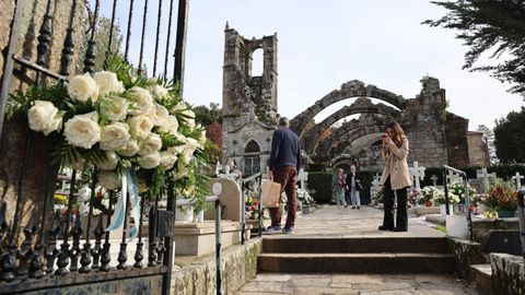 - El más hermoso cementerio. Las ruinas de Santa Mariña Dozo, en Cambados, se elevan como versos escritos en piedra. Sin duda, el más hermoso de los cementerios de O Salnés registró ayer una jornada ajetreada como pocas otras. El Concello colocó en su acceso un ramo con la bandera de Galicia.