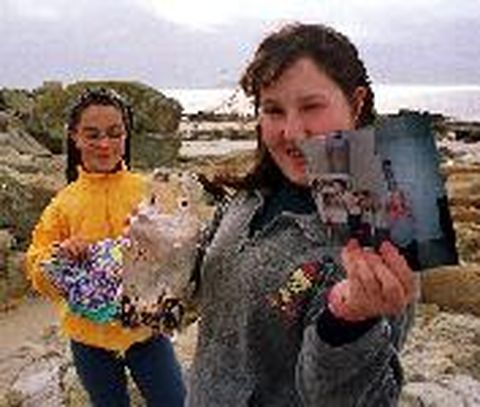 Dos niñas de Aguiño encontraron en una playa un recipiente con un mensaje enviado por una canadiense De Greenwood, en Nueva Escocia, a la playa de A Penisqueira, en Aguiño. Muchos miles de kilómetros separan ambos puntos, los que recorrió una botella con un mensaje y varios documentos en su interior. Sin una dramática historia detrás, ni una gran hazaña que narrar, Kathy Cormier, de 44 años, quiso contar su normal vida a alguien. Y, en pleno apogeo «internauta», no encontró ningún canal mejor que un recipiente de plástico, que durante nueve meses bailó al son de las olas del Atlántico. El pasado martes llegó a puerto. Allí la esperaban dos hermanas de Aguiño, «Apu» -Apolonia- y Chelo Maceiras Cacabelos.