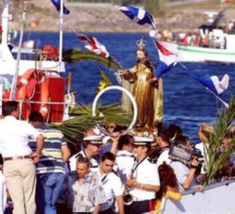 08 sep 2001 . Actualizado a las 07:00 h.Cientos de sonenses cumplieron con su patrona, la Virxe do Carme, y antes de las seis de la tarde ya aguardaban como clavos en el entorno de la dársena portuaria para acompañar a la imagen en su recorrido sobre las olas. Sin embargo, ayer no daba llegado la hora de despegarse de la explanada. Decenas de feligreses que acudieron al acto especulaban sobre las causas de la demora. Al parecer, y según pudo saber este diario, el sacerdote que estaba previsto que oficiase en un principio la ceremonia de la ofrenda floral en alta mar no podía asistir por lo que se designó a su sustituto. Se desconoce si hubo algún fallo de comunicación o motivo similar pero lo cierto es que la comitiva tomó rumbo al medio de la ría noiesa sin que el párroco formase parte de la tripulación, repartida entre numerosas embarcaciones. El buen tiempo reinante permitió que la procesión pudiese surcar las olas aunque también dio pie a una espantada masiva hacia las playas. La devoción por la patrona de los marineros se pudo palpar, asimismo, en los oficios litúrgicos que se celebraron por la mañana.