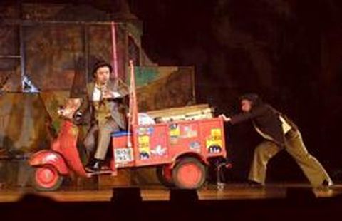 22 sep 2001 . Actualizado a las 07:00 h.Este nuevo ciclo de teatro en Ribeira arrancó la noche del viernes con relativo éxito de asistencia. Un público que siguió las andanzas y vicisitudes de Cosme y Damián, dos cómicos ambulantes que, en un lugar y tiempo cualquiera de un mundo imaginario creado por el autor y director de la obra, Cándido Pazó, intentan arreglar su averiado motocarro, en el que transportan sus escasas pertenencias e ilusiones rotas. La pareja de fracasados que buscan su gran oportunidad después de una larga carrera de sinsabores, responde al esquema del emprendedor, entusiasta confiado y algo caradura que es Cosme -Santi Prego- y del abnegado, realista e ingenuo, que es Damián -Avelino González-. La compenetración que muestra el dúo sostiene el interés durante toda la obra, e impide que decaiga en las escenas menos logradas Los atribulados comediantes reciben el encargo de una representación de amor para celebrar las bodas de plata de unos duques en su palacio y, mientras ensayan, hacen partícipes a los espectadores de su número. En una libérrima interpretación de Romeo y Julieta, los de Ollomol Tranvía dividen al respetable en Capuletos y Montescos para que bombardeen con bolas de papel al actor rival que toque. Además, con ágil reflejo introdujeron una nota de actualidad en la obra, estrenada en primavera: una breve alusión al nuevo conselleiro de pesca y al carácter marinero de Ribeira. En definitiva, esta «pateticomedia»~ ofrece con sencillez y bien entrelazados humor, sentimientos de amistad, amargura y esperanza, ligeras reflexiones sobre la muerte y un toque absurdo y chiflado, encerrado en el título, entre lo onomatopéyico y la connotación sexual.