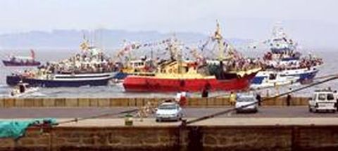 02 ago 2003 . Actualizado a las 07:00 h.Miles de personas acompañaron a la Virgen del Carmen en su tradicional paseo por las aguas de Ribeira. El acto más emotivo de las fiestas de la ciudad tuvo lugar en la tarde de ayer, en la que los marineros homenajearon a su patrona. El sector pesquero volvió a rendir un cálido tributo a su protectora en un día muy especial. A pesar del calor asfixiante, la lonja se llenó de fieles que asistieron a la misa en honor a la virgen. La coral polifónica, acompañada de la orquesta de cámara de Aguiño, cerró el acto religioso con la interpretación de la Salve Marinera . A continuación, la comitiva se dirigió al muelle para participar en la procesión marítima. La imagen y las autoridades embarcaron en el arrastrero Pescarosa cuarto para realizar el tradicional recorrido por las aguas próximas al puerto. Una estela de decenas de barcos acompañaron a la imagen para pedir su protección. Mientras, en la dársena, cientos de personas contemplaban el desfile de la comitiva, al mismo tiempo, las bombas de palenque inundaban la zona de un olor a pólvora cuya intención era homenajear a la protectora de las gentes del mar.