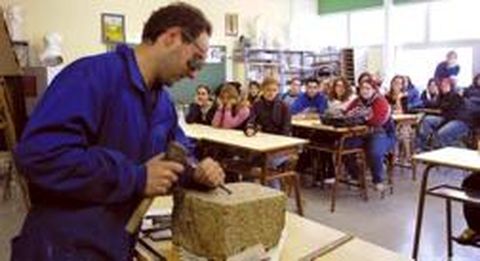 27 oct 2003 . Actualizado a las 06:00 h.El arte no tiene edad, es atemporal, imperecedero, eterno. Quiere decir esto que las técnicas y las herramientas de las que se valían nuestros antepasados hace doscientos años para tatuar sobre piedra sus creaciones artísticas, todavía hoy están en vigor. Así lo demostró ayer el escultor Francisco Remseiro, que ofreció a los alumnos del Instituto Praia Barraña una demostración in situ de escultura pétrea. Con esta actividad quedó inaugurada la Semana da Cultura Galega Actual de Boiro. Maza en mano, puntero en la otra y un gran bloque de granito delante, Remeseiro grabó a lo largo de dos horas y ante la mirada atenta de sus alumnos, una cruz celta. «Trátase dun material moi fráxil, case máis que a arcilla. Hai que ser moi coidadoso pois calquera erro é irreversible», comentó Francisco Remeseiro. La habilidad y la maña, explicó el artista a sus alumnos, son las cualidades principales que ha de tener un escultor cuando trabaja sobre piedra. Y así lo pudieron comprobar los chiquillos cuando observaron como Remeseiro dibujaba sobre la agreste superficie el motivo celta, ayudado sólo de un lápiz y un compás. «As ferramentas son moi importantes. Hoxe en día hainas máis modernas, que fan o traballo máis sinxelo, pero o resultado non é o mesmo», señaló el escultor. Una vez el artista terminó su trabajo, llegó el turno de los pupilos. Remeseiro animó a los chiquillos a comprobar en primera persona lo que es esculpir sobre piedra. Asimismo, el escultor manifestó que es una equivocación pensar que el arte pétreo no está de actualidad: «El granito es como el sonido de un violín. ¿Quién se hace viejo, el instrumento musical o quién lo toca?».