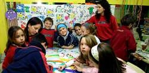 Cosas de la gente Niños del municipio de Porto do Son se juntaron ayer en la ludoteca para hacer composiciones de dibujos y palabras en defensa de un mundo en el que reine la paz