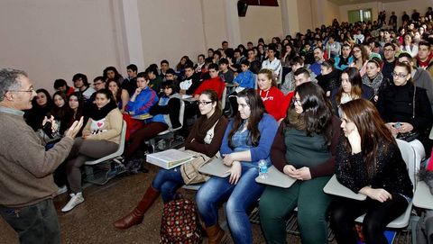Ángel Carracedo ha reinventado el significado de la palabra conferencia. Dicen sus alumnos de la Facultade de Medicina de la Universidade de Santiago de Compostela que es un crack, capaz de dejarte prendado con sus palabras y contagiar su amor por la genética forense. Lo comprobaron ayer unos estudiantes más jóvenes, los del instituto de A Cachada de Boiro, a los que dejó realmente entusiasmados con el complejo mundo de la ciencia y, en particular, del ADN. Centenares de jóvenes asistieron a su charla y pocos pestañeaban. Los conceptos de los que habló el catedrático de Medicina Legal ya no suenan a chino. Quizá alguno descubrió que su futuro está entre las cuatro paredes de un laboratorio.