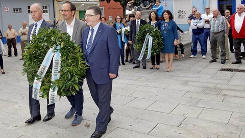 Cuando comenzaron a sonar los acordes del himno gallego se depositaron las flores en la estatua que reina en las inmediaciones del museo que también lleva el nombre del ilustre escritor.