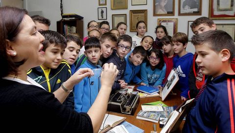 Caricaturas de Siro López, armas antiguas o los sillones que el periodista tenía en su biblioteca completan la decoración de una sala por la que ayer desfilaron los alumnos de educación infantil y primaria. Hoy conocerán este rincón dedicado a Bayón los estudiantes de secundaria. Además, por la tarde habrá un acto que servirá de reencuentro para los profesores que han pasado por el centro.