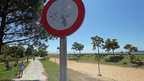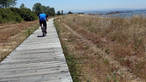El litoral está bordeado por un paseo marítimo de madera mediante el que se puede acceder a los distintos puntos de la playa. El elemento discordante se encuentra en que está un poco descuidado, ya que en algunos sitios hay restos de hogueras y la vegetación de los alrededores invade tanto la pasarela como algunos caminos de acceso a la zona de baño.
