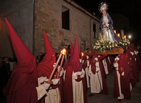 El Viernes Santo las aguas volvieron a su cauce para celebrar la Pasión. Y, aunque una vez más, la asistencia al templo para el desenclavo fue menos que la habitual, tras él vino la procesión del Santo Enterro, en la que se enterró el hacha de guerra entre la feligresía boirense. Los miembros de la Irmandade y el rebaño que sigue al pastor caminaron juntos de nuevo, después de aparcar una confrontación inicial sobre cómo establecer el orden en la que salía este último paso de la Semana Santa en el municipio.