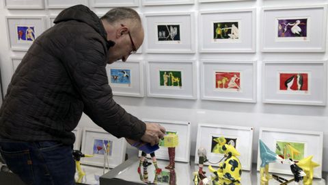 Llaman la atención al acceder al interior de la galería de Eugenia Gómez tanto el amplio abanico de colores empleado por el autor en la confección de esta serie como la convivencia de piezas realistas con otras que son fruto de su imaginación. El reino animal, bestiario ficticio incluido, está muy presente en la obras de este muradano que lleva ya varios años residiendo en Nueva York, donde trabaja como arquitecto.