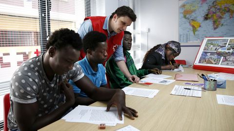 La asamblea de la Cruz Roja de Noia enseña español para facilitar la integración de los inmigrantes. Ellos solo piensan en compartir su nueva vida con sus familias