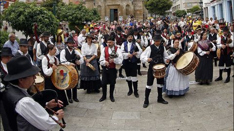 As que tamén estiveron de ruta toda a mañá de onte foron as agrupacións participantes no Día do Orjullo Jaiteiro, que remataron o seu recorrido cun concerto conxunto na Porta do Sol.