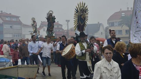 Pese a que el tiempo no acompañó el domingo, Corrubedo se echó a la calle para sumarse a la procesión en honor de la Virgen del Carmen. Hubo que aplazar los fuegos artificiales, que finalmente arderán hoy en el marco de una jornada festiva que incluirá mejillonada y cuatro actuaciones musicales. Foto