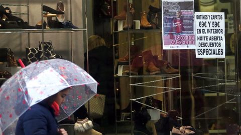 Otros, en cambio, iban a las tiendas a conciencia, sabiendo que podían adquirir prendas de temporada a un precio más bajo del habitual, así que aprovecharon la ocasión a pesar del día pasado por agua. A que quien y quien menos saliese de los establecimientos con alguna bolsa en la mano ayudaron los descuentos, que en muchos comercios superaban el 20 %. De hecho, no faltó quien tirase la casa por la ventana y ofreciese rebajas que podían llegar al 50 % o el 60 % en prendas seleccionadas.