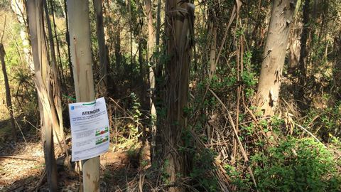 Posiblemente, muchos habrán visto estos carteles atados a los árboles en zonas en las que pinos y eucaliptos todavía crecen pegados a las principales carreteras. Precisamente, a la hora de poner en marcha esta iniciativa se diseñó un plan en el que se han tenido en cuenta varias cuestiones, entre ellas el riesgo de incendio y la importancia de las vías de comunicación.