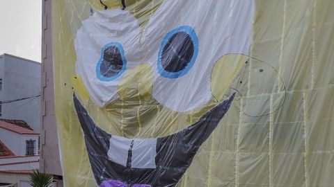 En estos tiempos de incertidumbre y cierres perimetrales, la pareja pobrense formada por Manuel Fandiño y Emma Romero vistieron de Bob Esponja la fachada de su vivienda. Atrajeron y sacaron una sonrisa a sus vecinos, pero ayer el viento les obligó a retirar el panel.