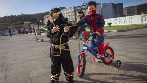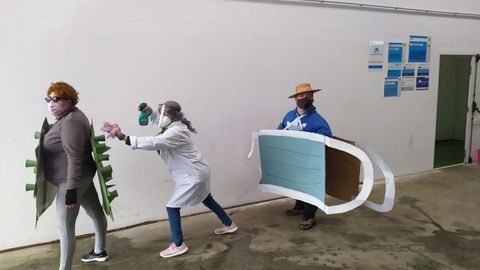 También en los centros de atención a la discapacidad que hay en la comarca han proliferado los disfraces. En su centro de Valadares, la entidad Adisbismur ha homenajeado a los sectores que permanecieron al pie del cañón durante el confinamiento. Como novedad cuentan con una figura, O Meco, que celebró su propio concurso.