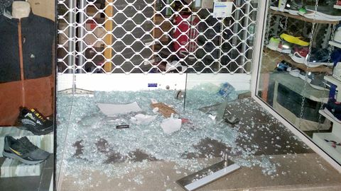 Cerca de las siete de la mañana, una vecina de la villa noiesa dio la voz de alarma de que un hombre estaba robando en la tienda. Al parecer, el ladrón rompió la puerta de cristal del negocio, pero no fue quien de superar la verja de seguridad ubicada tras ella.