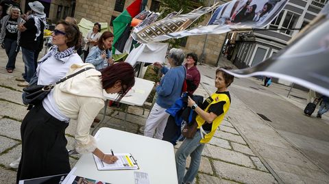 26 may 2025 . Actualizado a las 05:00 h.Durante 24 horas estuvieron acampados en la Porta do Sol ribeirense un grupo de miembros del colectivo Somos Refuxio. Quisieron con esta vigilia mostrar su solidaridad con Palestina y denunciar la escalada de violencia que sufre. Fueron muchas las personas que durante ese tiempo se pasaron por la plaza. Parte de ellas aportaron su grano de arena a la causa en forma de velas, fotos, carteles y mensajes.
