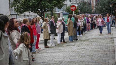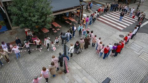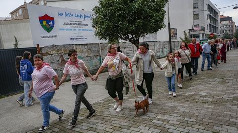 En torno a medio centenar de personas acudieron en un primer momento a la llamada de la asociación, pero a medida que estas tomaban posiciones a lo largo de la calle e iban entrelazando sus manos, se fueron sumando vecinos que se encontraban paseando o tomando algo en los locales hosteleros. Finalmente fueron más de 150 los eslabones que integraron la gran cadena.