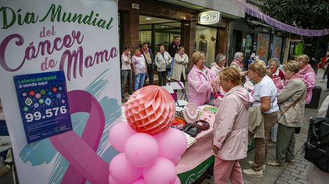 En Ribeira, la junta local de la AECC salió a la calle para ofrecer a la población información sobre la campaña lanzada este año bajo el lema O cancro de mama tomámolo a peito. Aprovechó para vender artículos diversos y sumar así fondos para la lucha contra la enfermedad.