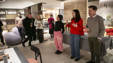 Esta artista multidisciplinar natural de O Porriño muestra en el establecimiento situado en Cimadevila la colección Plantas de interior, que permanecerá a disposición del público durante tres meses. Con motivo de la inauguración, la pintora fue recorriendo los cuadros que conforman la muestra y explicando a los asistentes las características y el momento vital que motivó cada creación.