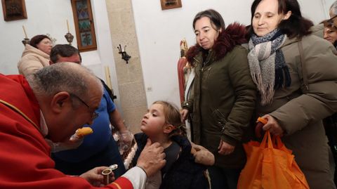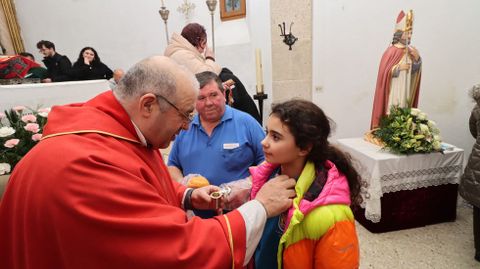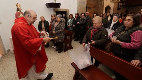 Además de la unción de las gargantas de los presentes, el sacerdote bendijo el medio millar de panes que se repartieron entre los feligreses, así como otros dulces que los propios vecinos llevaron. También se repitió en el interior del templo pobrense el ritual instaurado el año pasado: la bendición de cordones. Los poseedores de estos artículos deberán llevarlos al cuello durante nueve días y después quemarlos para conseguir así la protección de sus gargantas.