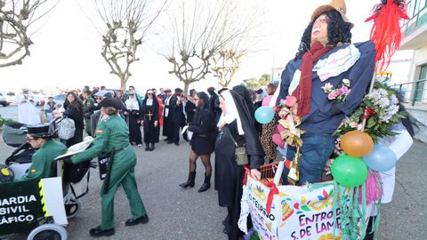 Con la quema del Felipiño en la zona portuaria también despidieron el carnaval los vecinos de la parroquia boirense de Lampón. La fiesta en la localidad comenzó varias horas antes, con una animada ruta por las tabernas, en la que el humor y la música de Fanfarria Furruxa fueron las notas dominantes. Antes de la incineración hubo lecturas de las últimas voluntades del difunto y brindis de despedida.
