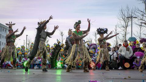 Porto do Son le puso el broche al carnaval con su cita estrella, el concurso de disfraces y comparsas. Los participantes desfilaron desde la casa de cultura hasta la fachada marítima, provocando en las calles una invasión de color y música. Ya en la carpa, Juan de Troula eligió entre el público a los miembros del jurado, que concedieron el premio gordo, a la mejor comparsa, al grupo local Os de Sempre, con sus trajes y su carroza inspirados en Venecia. El segundo puesto fue parra el Aquelarre de Portus Ebora y el tercero, para los zíngaros del club de jubilados. En la categoría de grupos se impuso la tribu africana, por delante de los indios y la fauna marina.