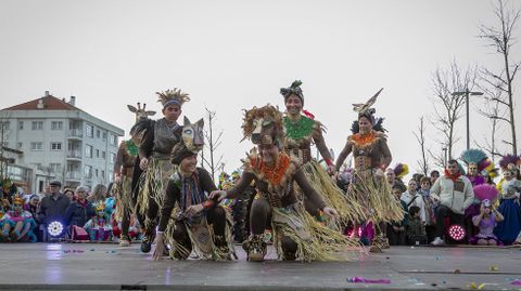 El ambiente carnavalero se apoderó de la villa rianxeira, donde también se celebró el concurso de disfraces y carrozas pospuesto el domingo. Estuvo precedido de un animado desfile.