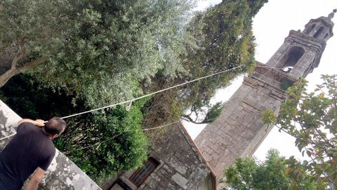 Doblan las campanas en Taragoña. Esta vez no hay difunto en la parroquia, pero sí está previsto un aniversario, así que a su hora, Javier interrumpe su faena, apaga el cortacésped y se dirige al lateral de la iglesia. En el muro reposan dos largas cuerdas que proceden del campanario. Porque en esta parroquia rianxeira, a diferencia de lo que ocurre en la mayoría, es él, y no un sistema automatizado, el encargado de repicar los metales para anunciar que se ha muerto alguien.