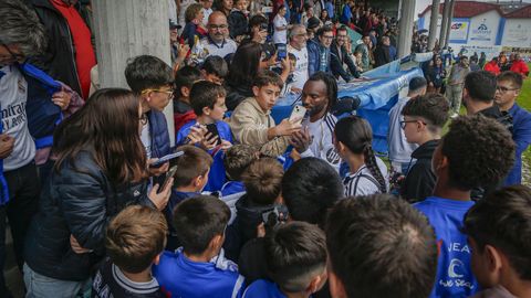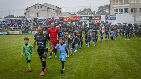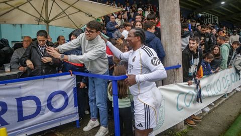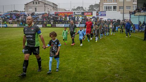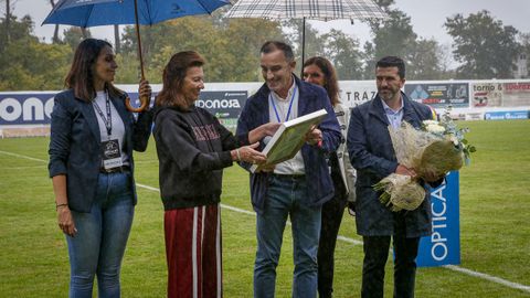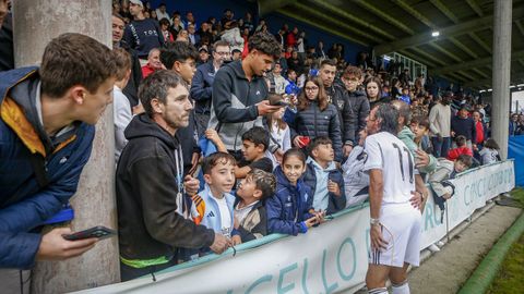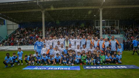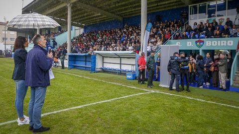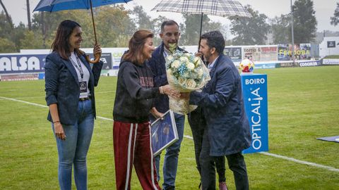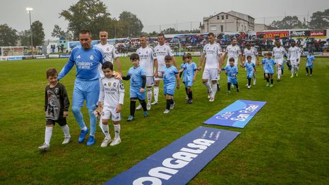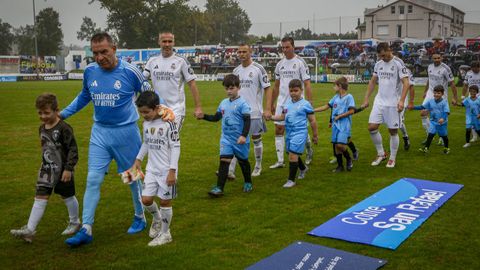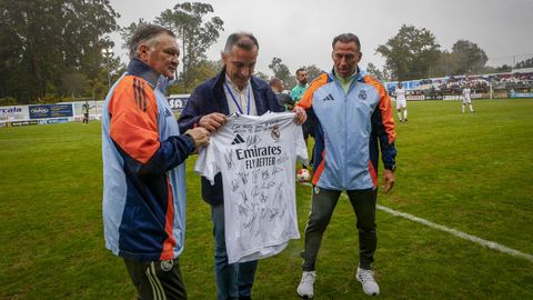 Antes del pitido inicial, hubo un sencillo pero sentido homenaje a Jesús Alonso, y el Boiro hizo entrega a su familia de una placa y un ramo de flores. La abarrotada grada —había más de 1.300 personas en el campo— dio la bienvenida a las estrellas madridistas haciendo la ola mientras el balón comenzaba a rodar sobre el césped.