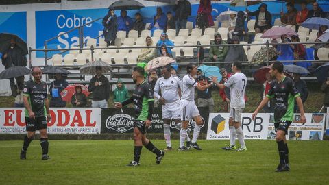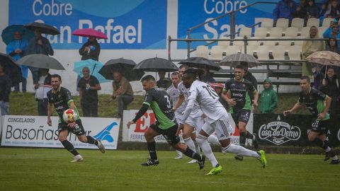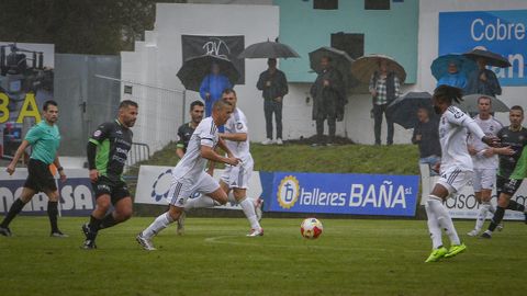 El paso por vestuarios fue un revulsivo para el conjunto boirista. Renovado de cabo a rabo, el equipo dirigido por Luis Santiago saltó al campo a plantar batalla y en los primeros compases rondó la portería defendida por Kiko Casilla. Manu Barreiro perdió un balón cuando se adentraba peligrosamente en el área, un centro con toda la intención de Juanito no encontró rematador, y un disparo de Saro se marchó fuera por poco.