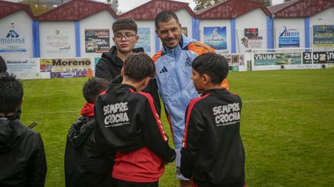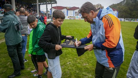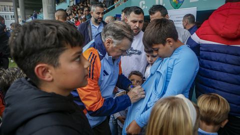 El intermedio fue una fiesta, sobre todo para los más pequeños, que pudieron abordar al exseleccionador José Antonio Camacho para que les firmase camisetas y hacerse fotos con él.
