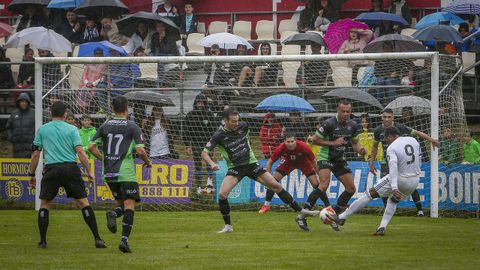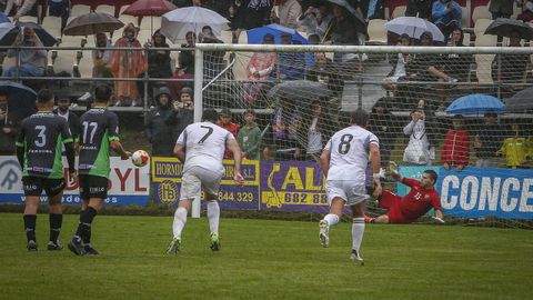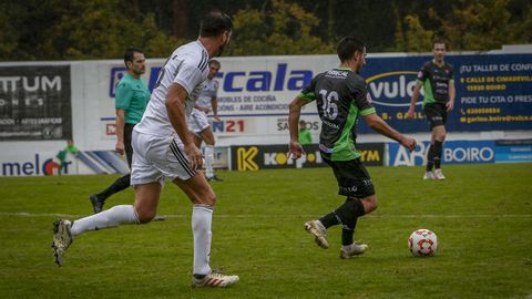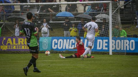 Lo intentaban los Amigos del CD Boiro por la banda derecha. Borja Yebra se topó con un centro de Pablo en el área, pero no logró conectar un buen disparo. El rechace fue para Manu Noal, que envió el balón muy alto.