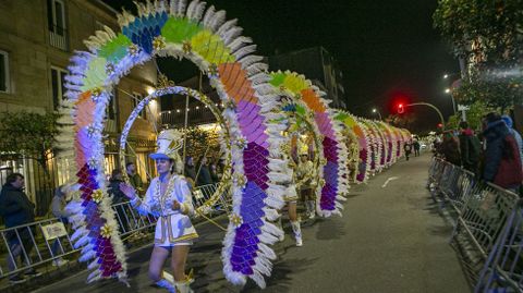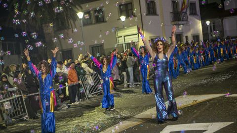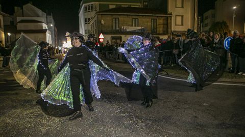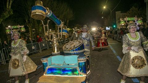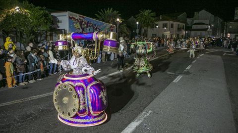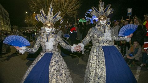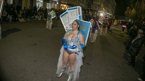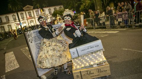 En la categoría de comparsas, el premio gordo (500 euros) fue para una agrupación llegada desde Vimianzo: La fábrica de la luz, integrada por personas convertidas en vistosas y coloridas lámparas. El segundo se quedó en Barbanza, pues se lo llevó un colectivo de Porto do Son inspirado en Venecia. Y el tercero fue para los muradanos que lucieron vestimentas al más puro estilo árabe.