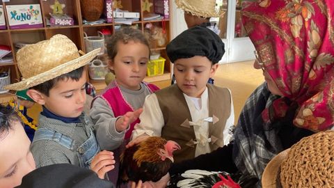 También los centros educativos se vuelcan con el carnaval, como la escuela infantil Monte Carmelo de A Pobra, que durante la semana se transformó en un campo gallego. Los pequeños se vistieron para la ocasión, y a las aulas llegaron gallinas y gallos.